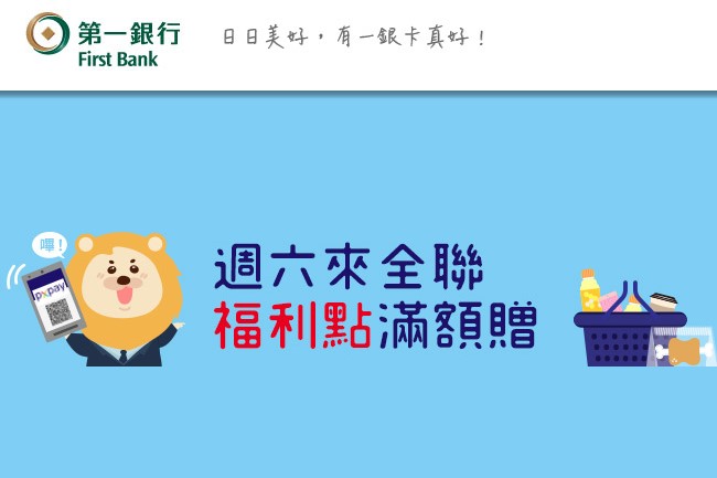 活動期間內,持第一銀行信用卡於全聯福利中心: