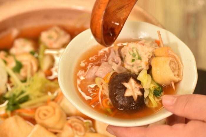 享受完一輪後就可以加入其他準備好的蔬菜、丸子餃類與肉片先煮熟,這時就換特製濃縮鍋底露出場,輕鬆的施展魔法為整體添入新的靈魂,有點像是不同形式的鴛鴦鍋一樣,之後還能自行加入烏龍麵或是飯來個第三吃完美收尾,多層次吃法肯定不會膩!