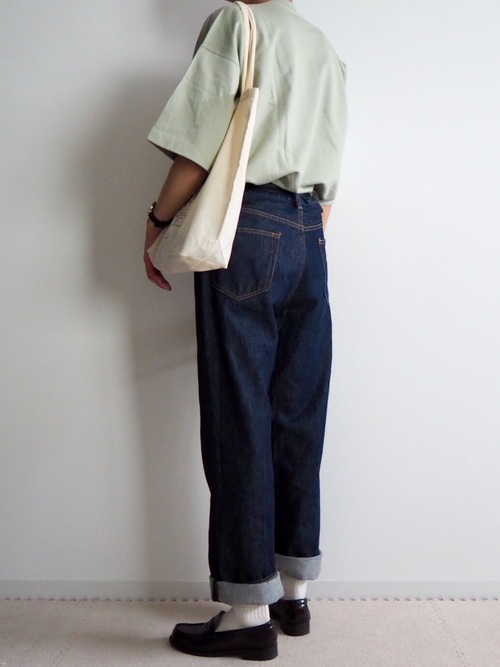 首先要介紹的應該多數男士皆能直接運用衣櫃單品來完成的樂福鞋穿搭。選用具備季節感的高彩度素 Tee 搭配經典的下身單品,像是寬感的奇諾褲、牛仔褲或是略微直筒的西褲等,如此簡潔的裝扮最後只要以樂福鞋來作為收尾即可。