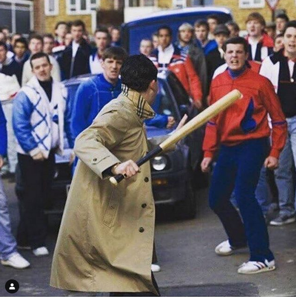 藉由對於賽事不滿而演出來的足球流氓,在 1960 年代的英國成為令人頭痛的一群人,他們不僅在賽事上鬧事,連日常的街頭都能看見他們喧鬧的身影,這群 “屁孩” 為了躲避警察查緝,便不約而同的穿起當時最紅的 Burberry 格紋仿冒品當作制服掩護,在當年還引發許多餐廳禁止讓穿 Burberry 格紋的人入內用餐。