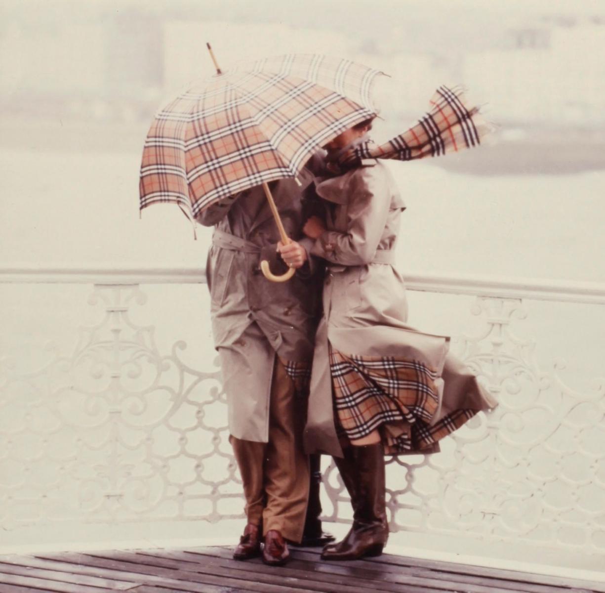 這個代表性的格紋,在奧運女子代表隊的加持下引起話題後,真正讓它站上 Burberry C 位的則是,1967 年品牌巴黎分店的經理在佈置櫥窗時,認為一整面卡其色服裝看起來有點無聊,因此隨意地翻起領口露出內裡格紋,此舉動沒想到成為當時最流行的風衣穿搭,更讓品牌以格紋延伸出圍巾、雨傘等配件。