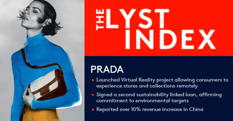 根據全球時尚搜尋平台 Lyst的數據 ,Prada在2020年第一季和第二季均拿下了熱銷榜上第五名的寶座。Prada靠著在疫情趨緩後,強打Re-Edition(復刻)系列中的 2005 Saffiano皮革掛肩袋、2006尼龍手袋、 2005手挽袋、2000掛肩袋,迅速在亞洲獲得10%的銷售額回溫,成為2020年最風光的品牌之一。