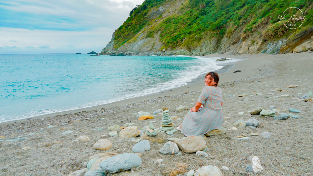 在神秘的無人沙灘上,只有我們跟許願石,聽著浪聲吹著海風,我們就在這沙灘上不知不覺的發呆了許久,原來南澳也有這樣的神祕地。