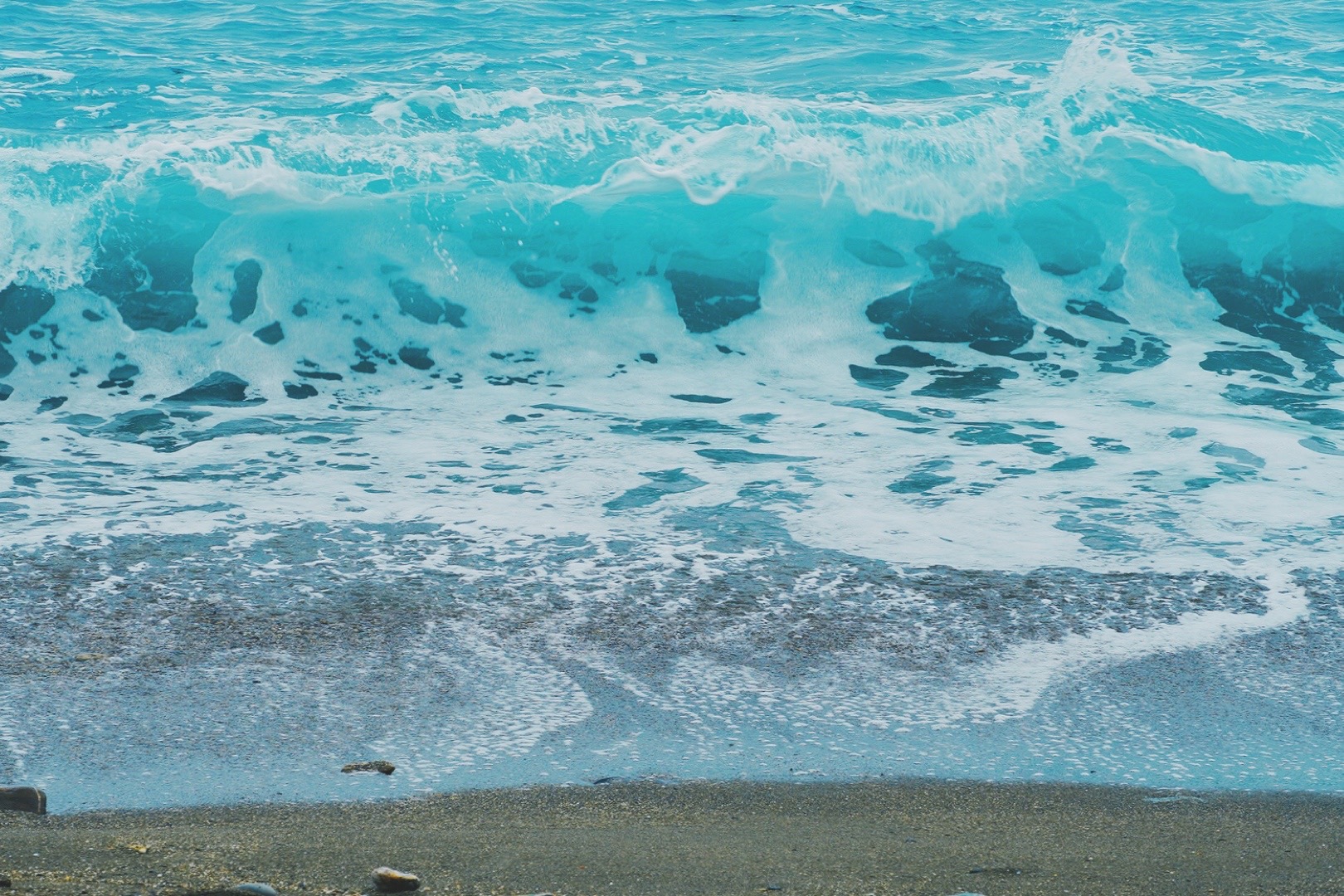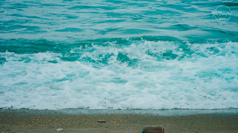 很罕見的沙灘有著柔和的細白沙還有超多小石頭跟大石頭,模樣都相當特別。