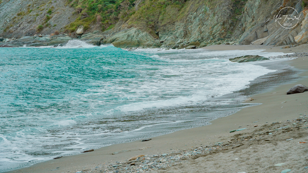 朝陽漁港位於朝陽國家步道入口旁,背山面海的特色景觀、景色怡人,後來查詢後才知道這裡也曾吸引偶像劇《你是春風我是雨》來此拍攝!從朝陽漁港的側邊有一個水泥階梯與鐵梯可以往上走就能抵達這個秘境沙灘 ,雖然他沒有粉鳥林許多礁石的交錯美感,但是光無人沙灘又是柔軟的細沙還有特殊的礫石結合而成!就已讓我愛上這。