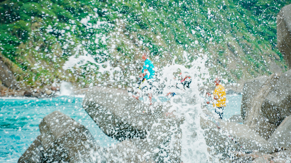 這裡其實不太適合下水,因為落差很大,所以微笑娃都是使用Sony A6400 18-135mm遠端拍攝,效果超級棒,還可以不用太靠近危險的海岸,也能拍出很美的效果。