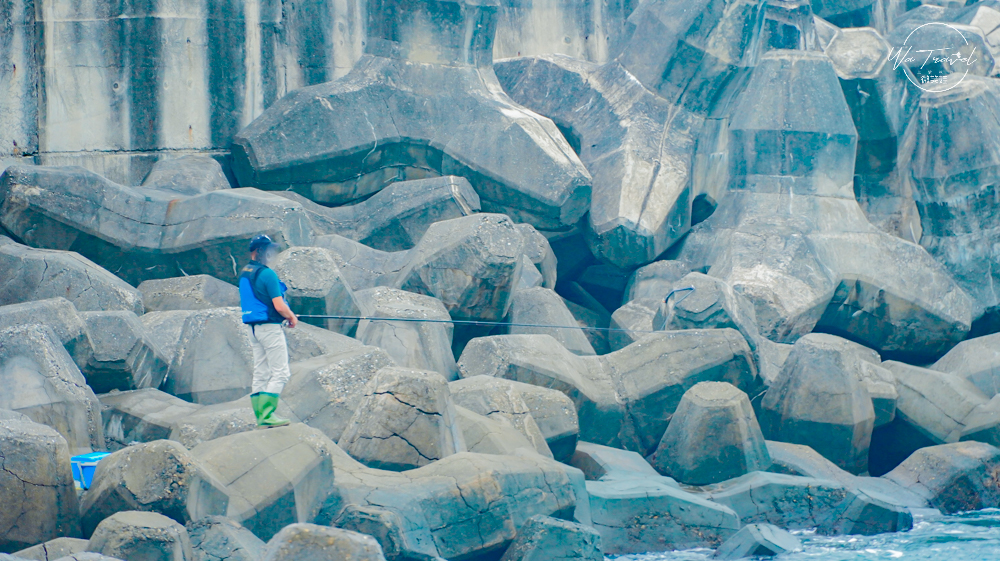 消波塊上也有不少人正在海釣,畫面相當震撼