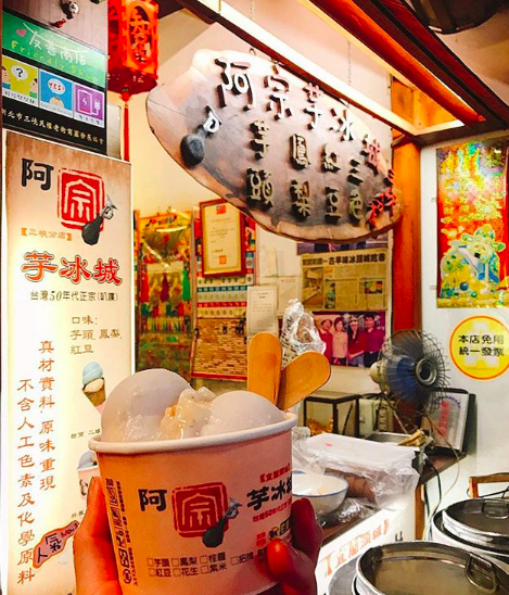 芋頭酥、芋頭冰也是一大宜蘭必吃,而阿宗芋冰城則是必推的頭城美食,一杯可以任選三種口味,紫米、鳳梨、花生、芋頭、桂圓等等超多口味可以選擇,招牌芋頭冰還是吃得到顆粒的那種,整個用料實在,難怪一整天店裡都滿滿的吃冰人潮!