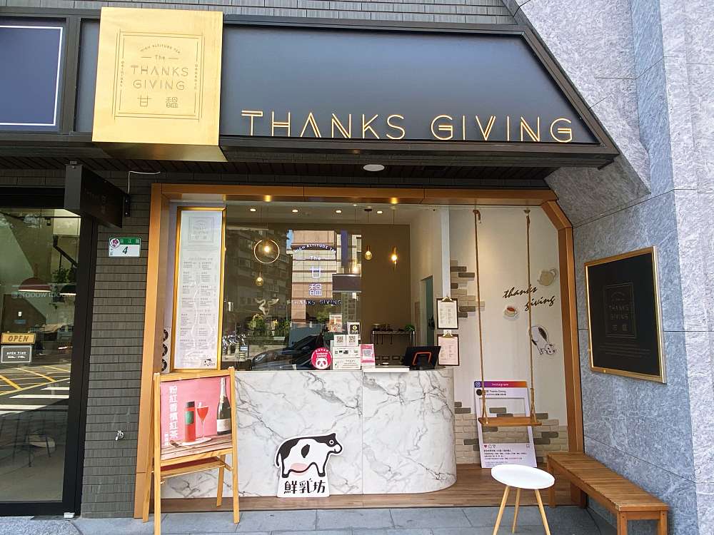 甘馧茶飲Thanks Giving由兩位資深餐飲人共同打造,以提倡燕麥奶給消費者更多元的選擇、用白木耳取代燕窩、5%茶飲營收捐助浪浪團體為3大堅持,是全台第一間「綠色企業」的手搖飲專賣店,期望能用手工調製的燕麥奶,讓消費者重新體驗奶茶的味道,也讓對鮮乳過敏、有乳糖不耐症的消費者能夠暢飲奶茶。