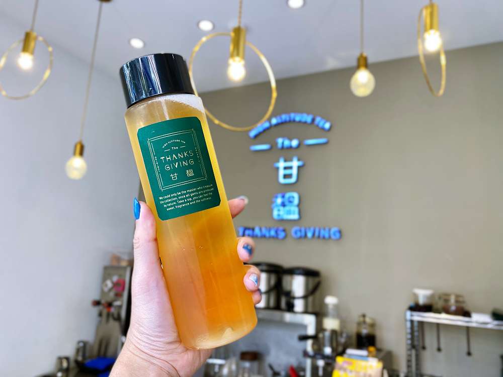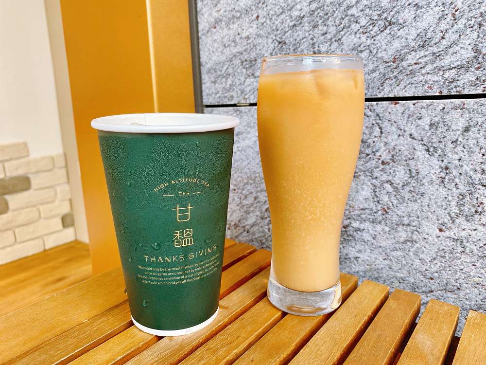 唸過一次店名其實就能發現蘊藏其中的巧思,甘馧與台語的「感謝」同音,精神是感謝大自然、回饋社會,期望創造友善地球的環境。目前除了有以燕麥奶、白木耳製成的多款飲品之外,還有耗時半年研發的無酒精香檳飲品「年份香檳烏龍」!