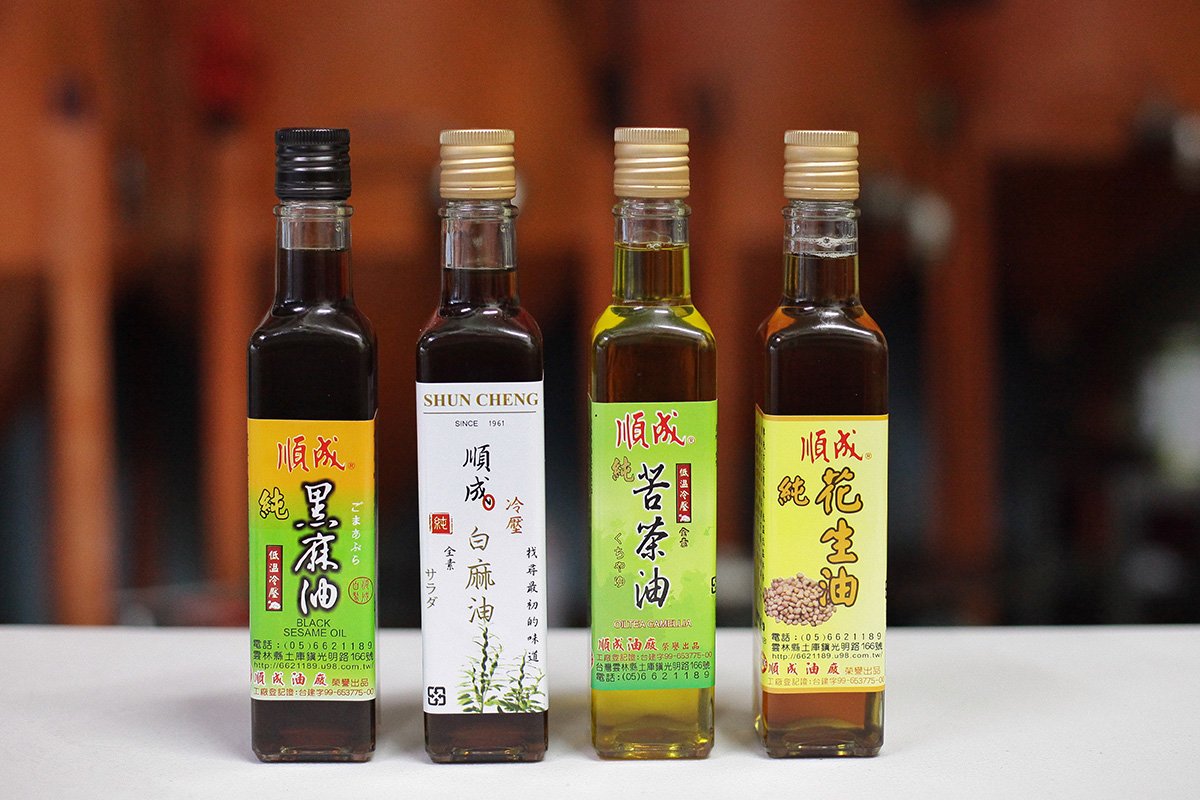 第四站來買伴手禮啦!一走進順成油廠就會被香氣逼人的芝麻油給震懾,小老闆王偉盛説:「越新鮮的芝麻壓榨出的麻油,就會特別有香氣。」黑芝麻油常常會拿來製作熱食的料理,例如麻油雞或薑母鴨,而白芝麻油比較適合拿來涼拌或加入涼麵一起做享用,會增加食物的香氣。金黃色的苦茶油,裡面含量有豐富的Omega-9成分,不僅適合拿來炒菜或煎蛋,連油炸食物都會更加健康,在減肥的人可以將少量苦茶油加入生菜中涼拌,排便不順的人也推薦少量生飲,可以幫助腸胃蠕動。