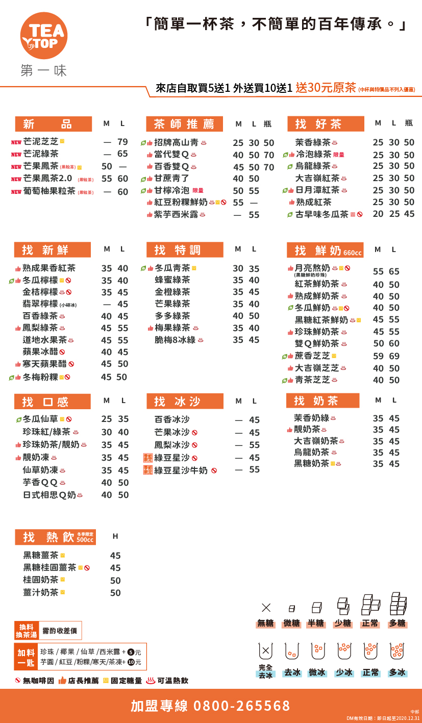 TeaTop的品項非常豐富,不論你是奶茶控、純茶控或是果飲控都可以找到你喜歡的飲料。