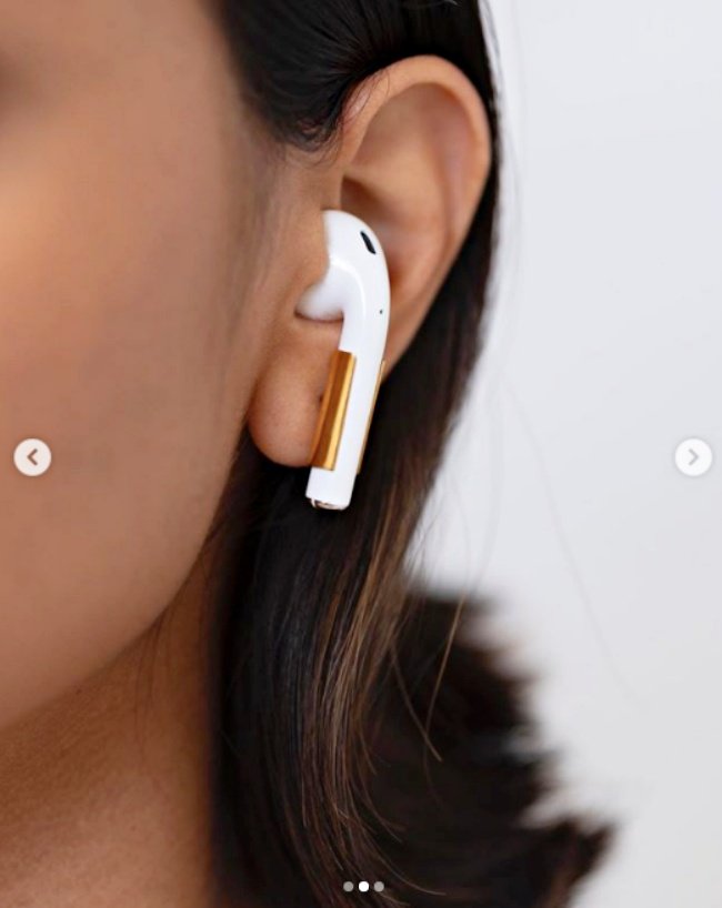 今年精品大牌「Louis Vuitton(LV)」才傳要推出要價350美元(大約台幣1萬初)的超奢華「AirPods耳機墜鍊配飾」,用LV標誌、Monogram圖案打造的金色長鏈墜飾,套上AirPods就是史上最吸睛的耳尖飾品,立刻引起時尚圈的關注,最近又有一個國外品牌推出一系列結合高科技的耳飾,價錢當然比較親民一些(笑)。