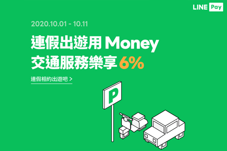 活動期間內,於指定停車場/加油站/共享機車結帳時,透過LINE Pay並使用LINE Pay Money(原一卡通帳戶)付款,享以下優惠: