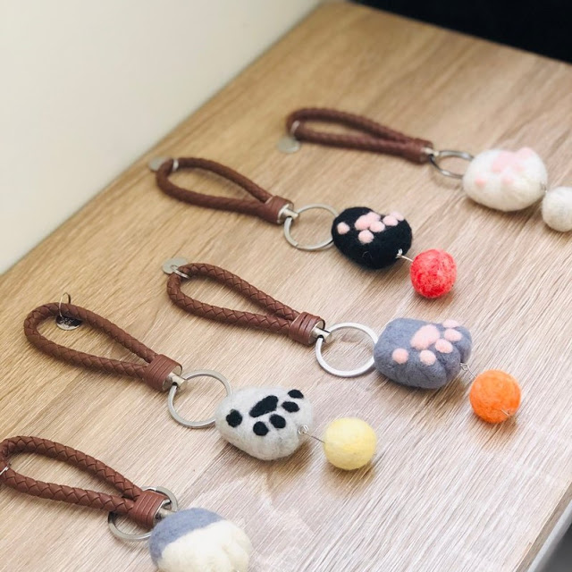 貓咪圓圓的肉球總是讓人想偷捏幾下,而這款貓掌鑰匙圈真的太犯規啦~可愛的貓掌前面竟然還有一個羊毛氈小球,看起來就好像貓咪伸手去玩球一樣,看了會忍不住也想摸摸那可愛的小球(笑)