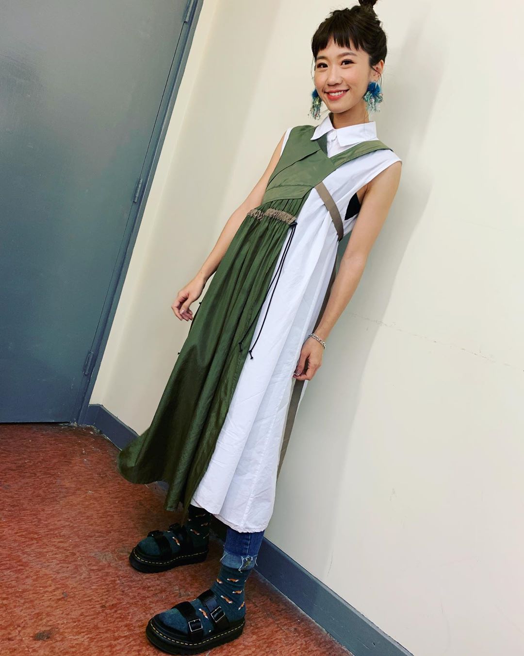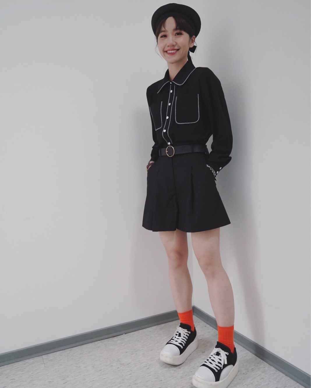 除了下半身服飾外,其實鞋子穿的好也可以讓腿更修長,搭的不好也可能讓雙腿看起來短又腫!在鞋子的搭配上Lulu以休閒好穿又時髦的風格來展現,配合顏色鮮豔的襪子增加穿搭的記憶點。高筒球鞋如果挑錯很容易讓雙腳有被截一半的視覺感,因此如果沒有十足十的把握,應盡量避免高筒球鞋,但襪子卻是一個很好的選擇喔,如果擅用襪子的話能讓整體穿搭更有層次感。