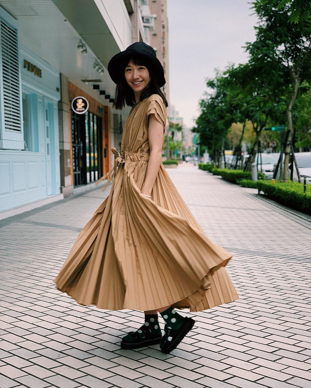 從Lulu日常洋裝穿搭中可以發現Lulu喜歡挑選「收腰+飄逸裙擺」的款式,寬大的裙擺不會曝露腿型,加上高腰的束腰剪裁,不只能顯腰細還能讓雙腿比例更修長。
