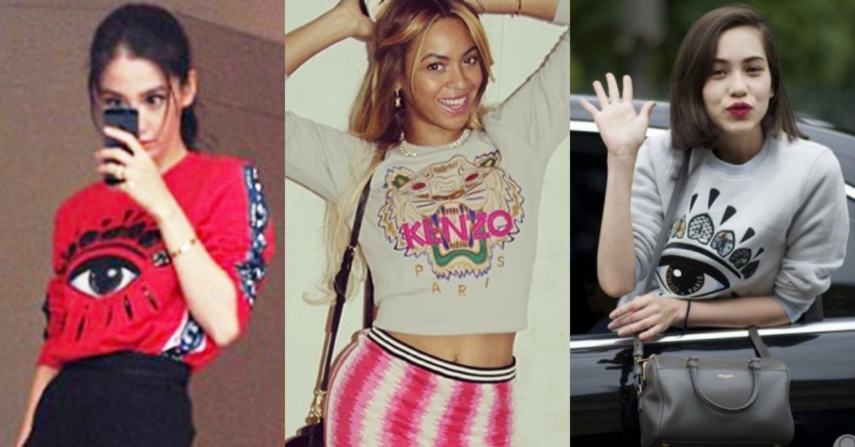 除了日式的特色服裝輪廓與剪裁之外,KENZO標誌性的老虎頭與大眼圖樣印花更是風靡歐美日韓的時尚名人圈,不少名人私服都能看到穿著KENZO服裝的穿搭!