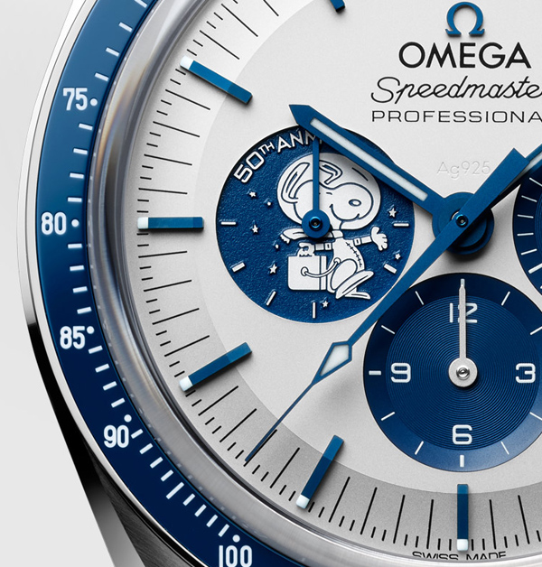 你以為Omega是隨隨便便找來一位知名的卡通人物聯名?當然不是!合作契機其來有自。1968年,美國NASA因為一直很想找一個深受美國人好感,同時又能代表美式精神的卡漫角色作為官方吉祥物,最終由1950年起開始連載的漫畫《花生漫畫》中最代表性的狗狗史努比雀屏中選,以作為太空飛行任務安全執行的「守護犬」,雙方並於同年成立「銀色史努比獎(Silver Snoopy Award)」,旨在表揚及鼓勵對於太空計畫具有相當程貢獻的供應廠商企業或人員;直至1970年時,阿波羅13號中的太空人更因巧善利用Omega旗下的經典「Speedmaster(超霸錶)」驚險成功返回地球的傳奇事蹟,致使品牌榮獲NASA所頒發的「銀色史努比獎章」,合作淵源從此展開,1970年至今年的2020,剛好50周年。
