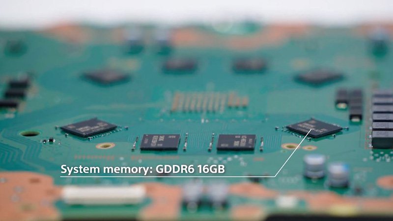 在主機板上還可以看到 8 個共計 16GB 的 GDDR6 記憶體,最大頻寬可達到每秒 448GB,以及這回相當重要的主角之一,可高速讀取寫入的 825GB SSD 和客製化 SSD 控制器,讀取速度最高可達每秒 5.5GB 的原始資料傳輸。