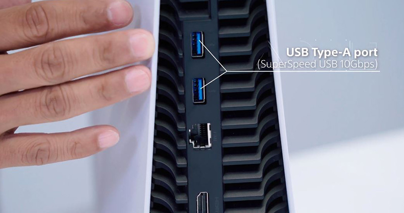 由 Sony 官方釋出的影片中,先是介紹了主機上所配備的連接埠。機身正面配有一個高速 USB-A 與 USB-C 插孔,機背則有兩個 USB-A、網路孔、HDMI 與電源線插孔等。