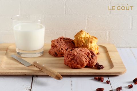 Le Gout最愛司康禮盒以昭和高級蛋糕粉製作,帶有獨特的迷人香氣及特性,且司康更鬆軟有彈性!此次禮盒五款風味分別融合法國歌劇巧克力 、日本首席茶匠監修之 森田園宇治抹茶利休、聖美多葡萄乾及杏仁等食材,創作出五款風味獨具的司康,繽紛的色彩加上司康的酥鬆口感與香氣,佐上一杯茶就是讓人愛不釋手的最佳組合!