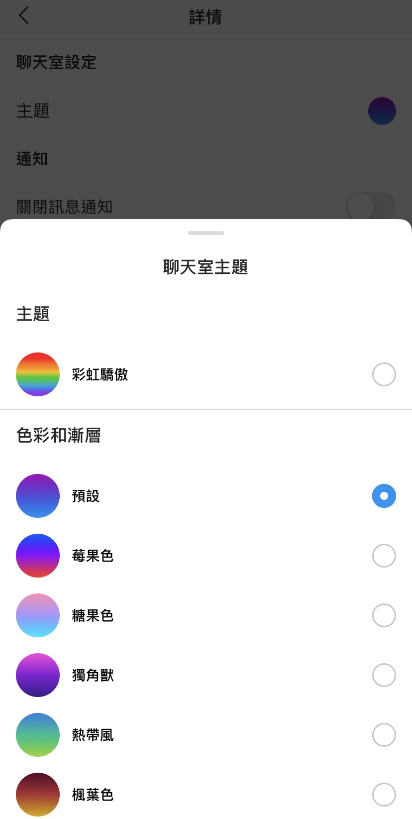 同時,Instagram也將聊天室功能擴大,可以自己挑選主題顏色
