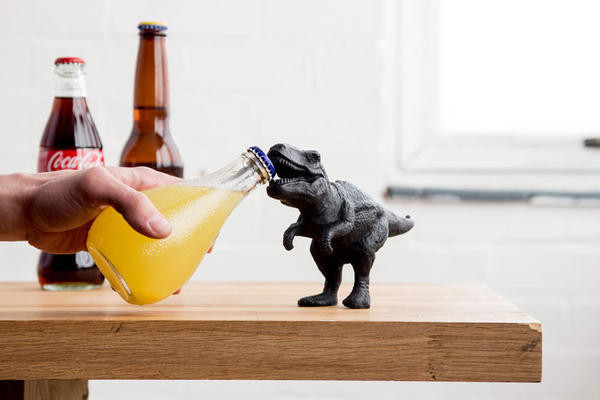 開瓶器百百種,只要有一個支點就可以達成開瓶的任務,所以有訴求好攜帶的簡易型,也有像這個放在桌上以為是公仔的超精美暴龍開瓶器。只要把蓋子放入它的口中,用力一拉即可,無論如何都是為了增添生活中的小趣味。