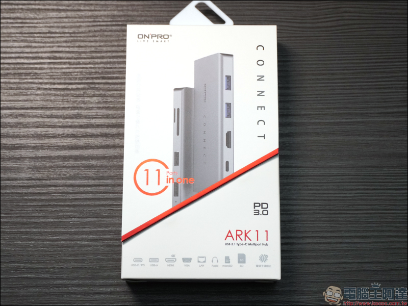 ARK11 也是 ONPRO 三款 Type-C 多功能擴充集線器中唯一具備 RJ45 網路孔、VGA 和 3.5mm 耳機插孔的 USB-C Hub :