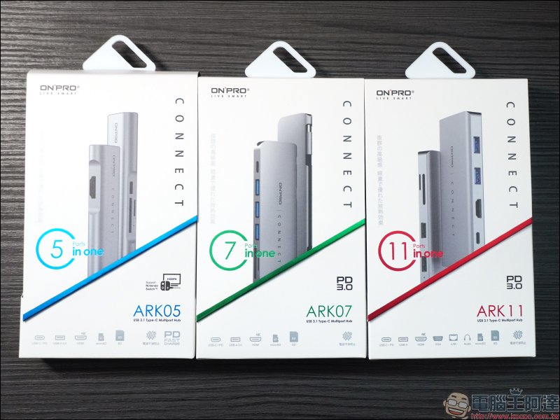 總結這三款 ONPRO Type-C 多功能擴充集線器其實在規格各有優勢,各位能依照自身使用需求和預算挑選到最適合自己的 USB-C Hub 。對於最基本的檔案傳輸、外接螢幕、充電需求,即便是最小巧的 ARK05 也能滿足;對於有多 USB-A(USB 3.0)的高速檔案傳輸需求,能收納連接線的 ARK07 會是更好的選擇;對於有像是有線網路、VGA 螢幕外接或有更多的裝置連接需求,那麼 ARK11 則可一次滿足。