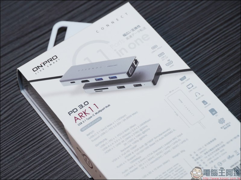 今天為各位開箱動手玩的 ONPRO Type-C 多功能擴充集線器,依照連接埠數量分為 5 合 1 、 7 合 1 和 11 合 1 三款,這三款 USB-C Hub 各有其特色,接下來就快速為各位帶來開箱動手玩吧!外盒設計延續過去 ONPRO 產品的慣例將產品外觀、規格清楚詳列在包裝,消費者能一眼辨識產品的規格重點。