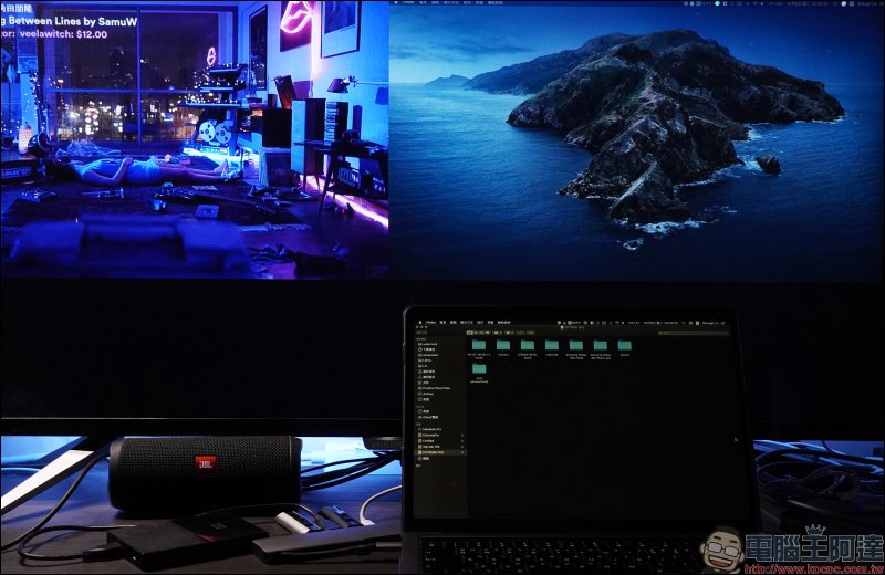 以下圖實際使用情境會更為明顯,當 HDMI 和 USB-C 都在同一側就能讓線材更容易集中: