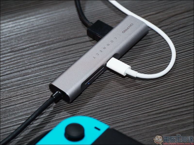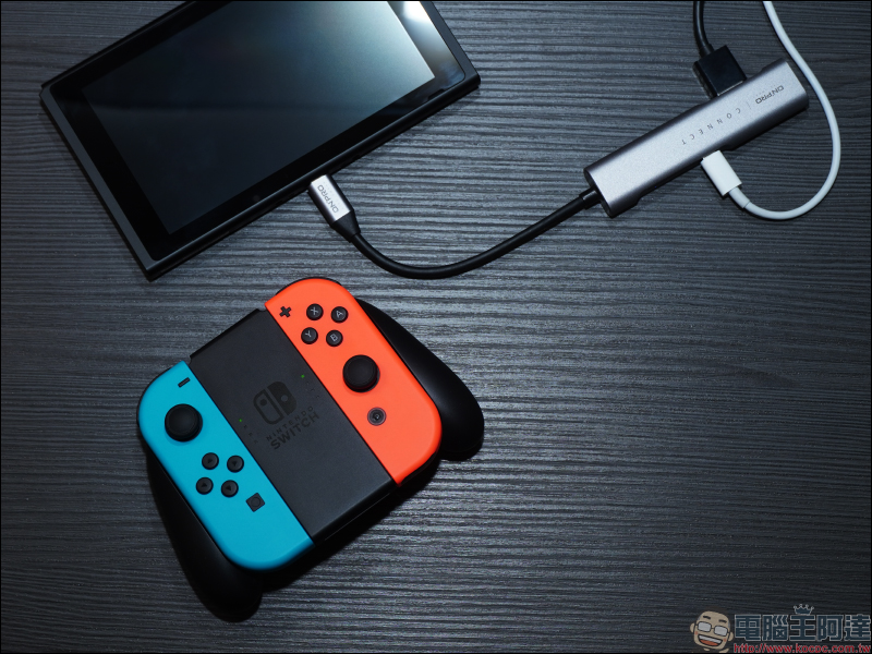 Switch 連接方式其實相當簡單,首先將 USB-C Hub 的 USB-C 線連接至 Switch 主機,接著分別將 HDMI 連接 USB-C 充電線即可: