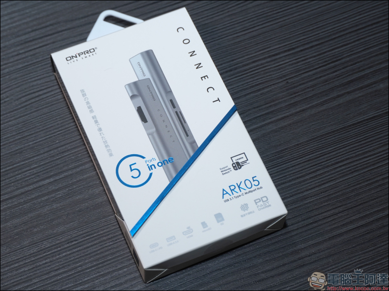 首先是其中最小的 5合1多功能擴充集線器(ARK05),擁有最小的機身但依然支持 USB PD 2.0 充電、HDMI 4K、USB-A 3.0、SD 記憶卡和 microSD 記憶卡共 5 種連接規格。