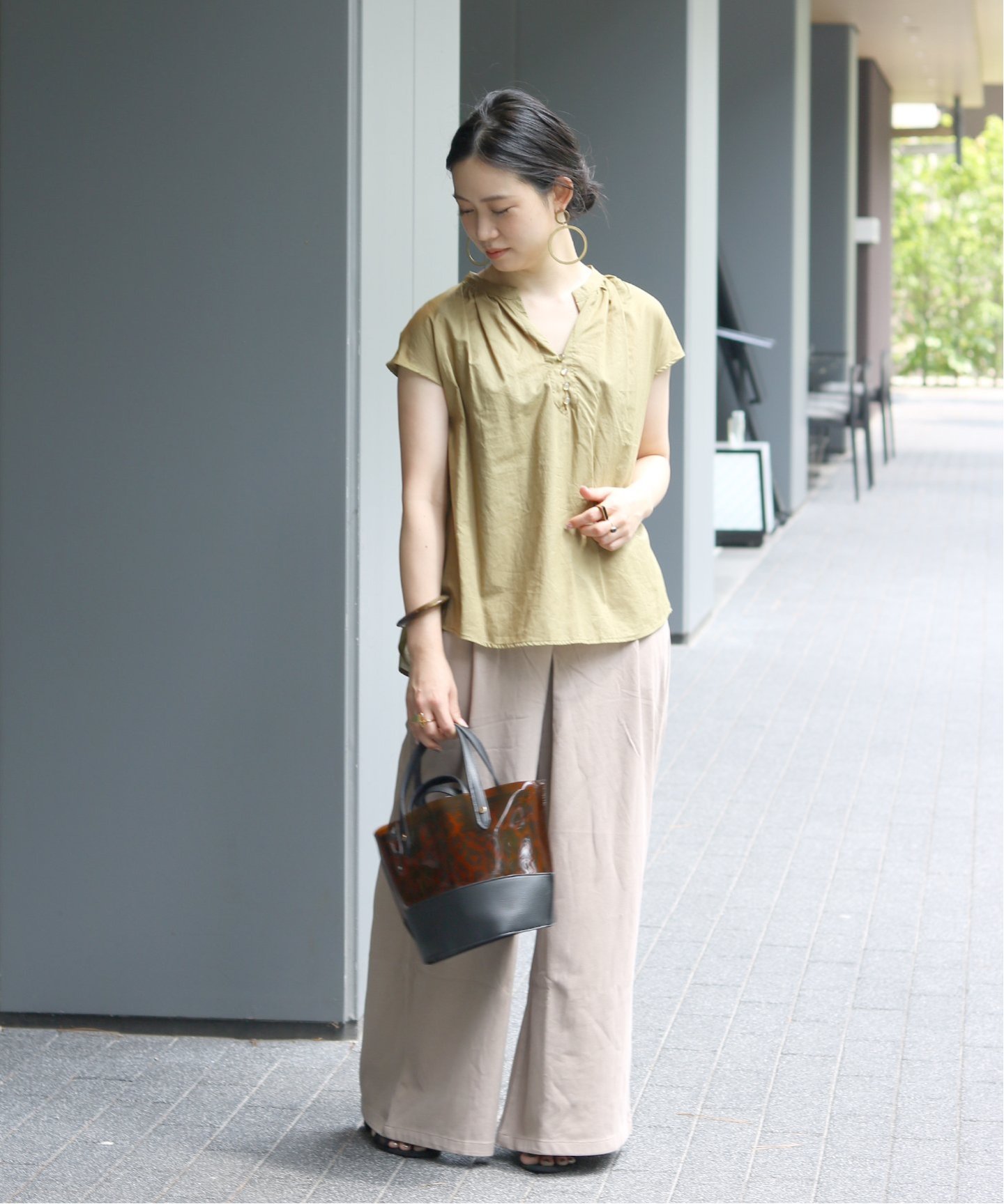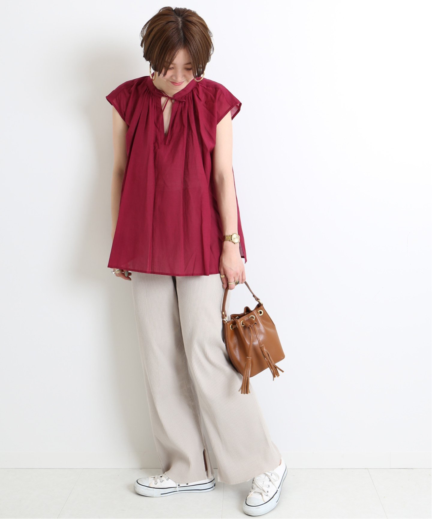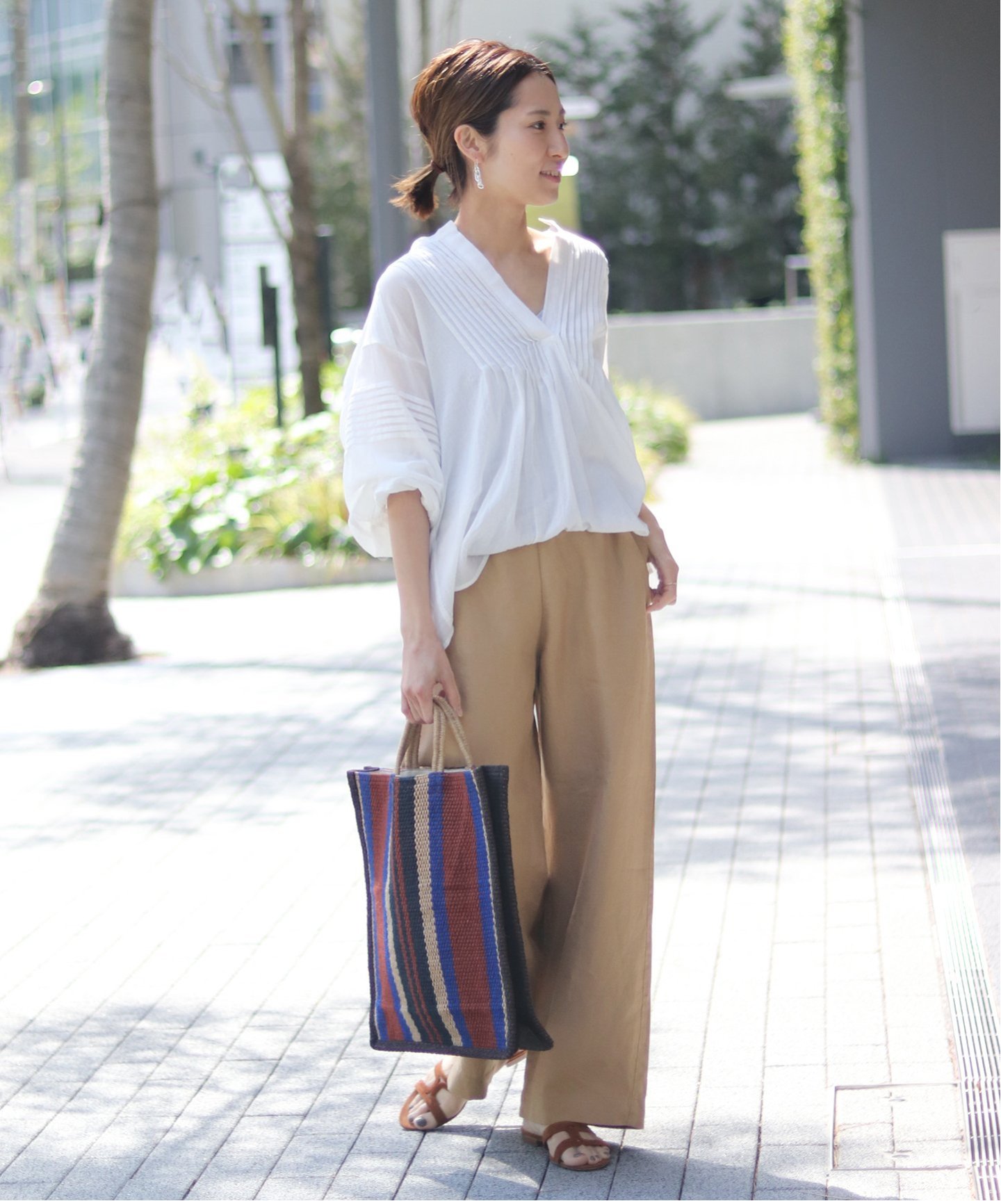 白色與米色讓罩衫的潔淨感再提升,於炎熱的夏季甚至是秋日穿搭都能表現出一股清爽氛圍。選擇有著打褶設計的款式也能讓一件單一的罩衫上衣也很有層次效果。