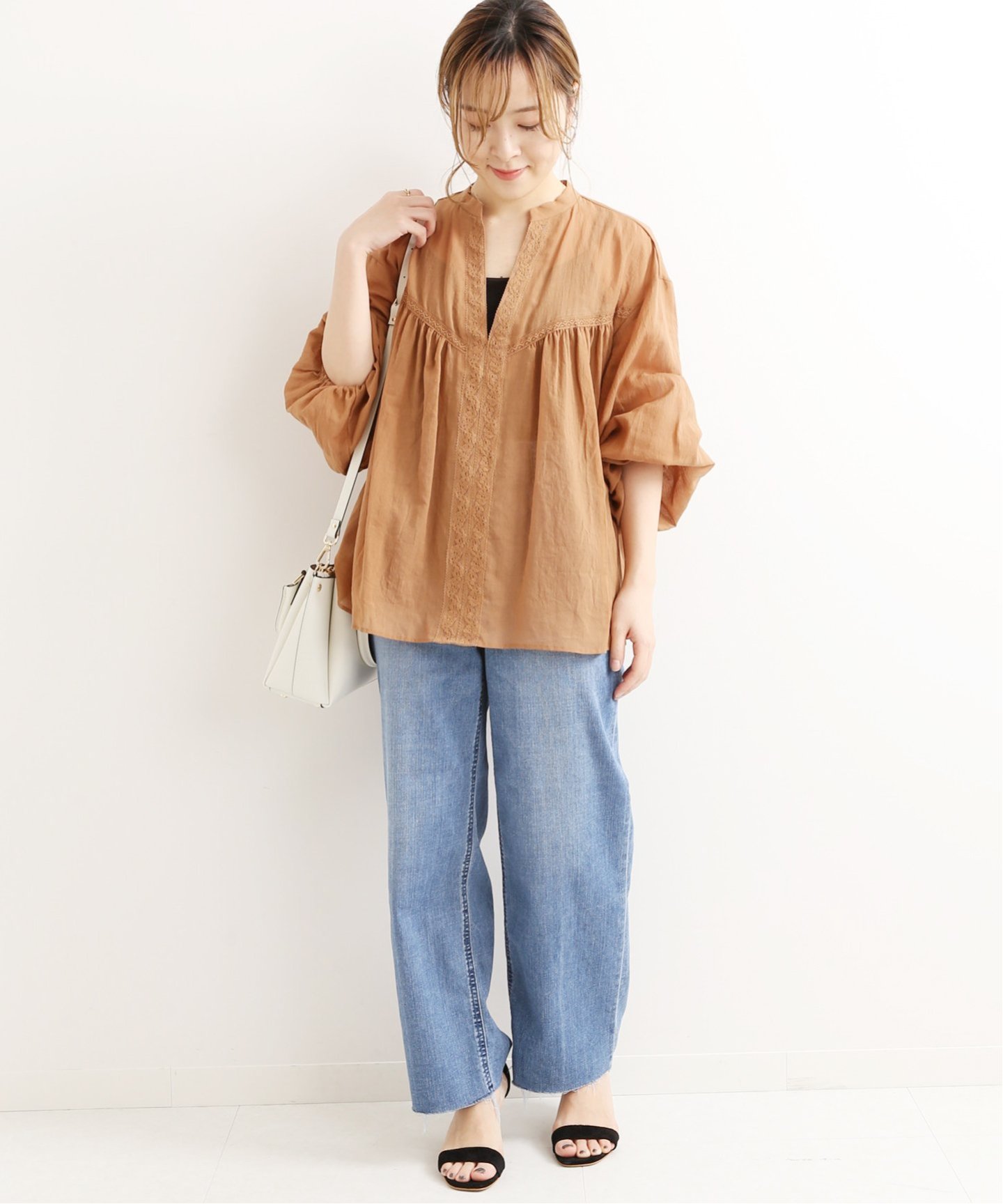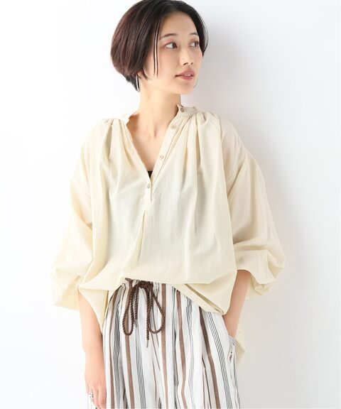 罩衫的特色在於空氣感的表現,輕薄的衣料搭配上柔和的服裝輪廓,即使不以裙裝一起穿搭也可以給人女生氣息強烈的服裝特質。蓬鬆感極佳的罩衫不僅能讓人感覺到涼爽,多數皆為開襟、V 領的設計還能透過脖子線條的延伸修飾臉型輪廓,微微露出的鎖骨也能達到顯瘦的修身效果。