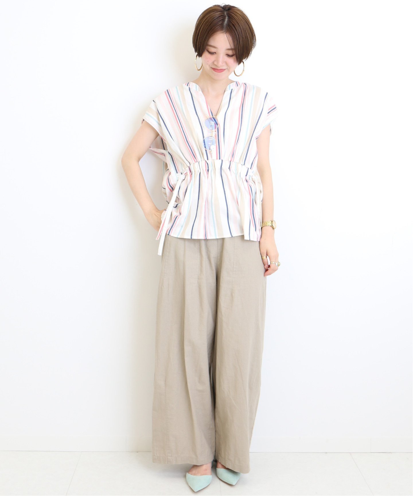 單一色彩的上衣偶爾會讓穿搭覺得有些平淡,而輕薄的款式也會讓造型少了些俐落感。有這樣的疑慮時,直條紋印花的罩衫就能解決以上這些問題。直條紋可以營造出衣著的整齊印象,也為簡約的夏季服飾迎來恰到好處的豐富感。