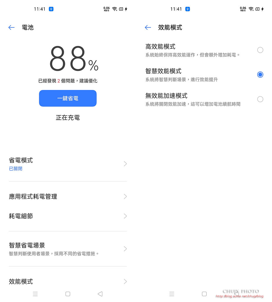 至於電池使用模式,也能手動變換或是讓手機智慧調整。
