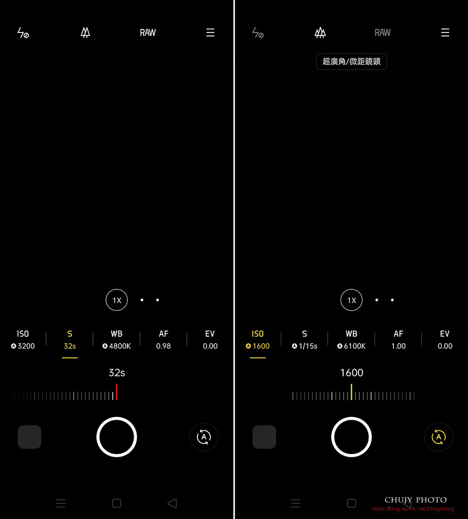 在專業模式上,最長可支援32秒長時間曝光,支援廣角/微距或是標準以及倍數放大等功能,也能儲存成RAW檔供詳細後製使用。