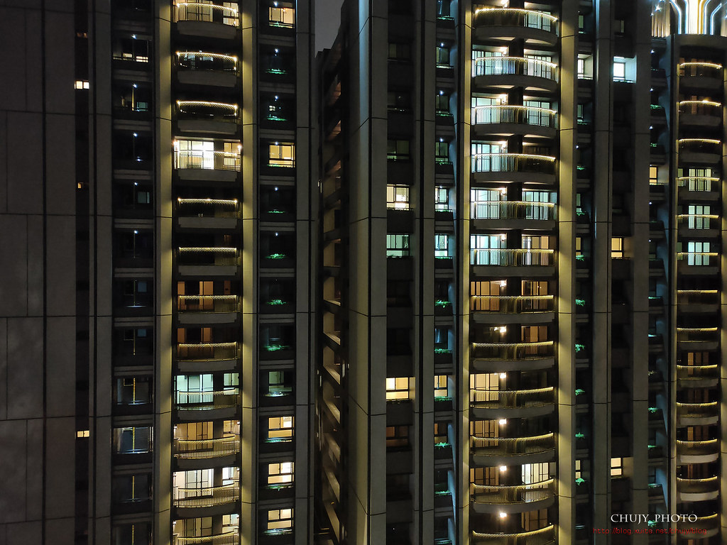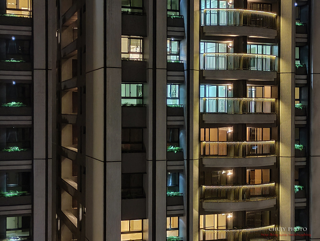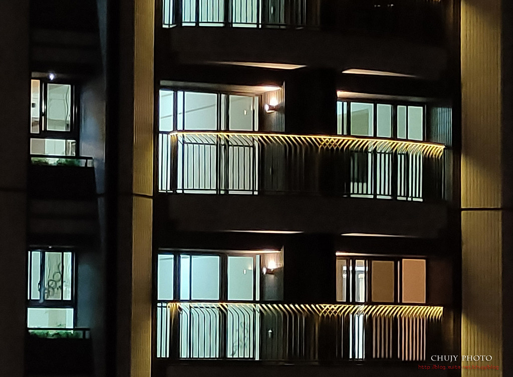 由以上可看出,在夜晚使用夜景模式會得到較佳的畫質以及解析力,特別在標準以及2倍光學焦段,即使沒有腳架也能發揮微光演算的能力。