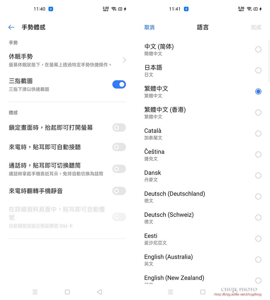 提供方便的休眠手勢以及三指截圖,也提供各種語系
