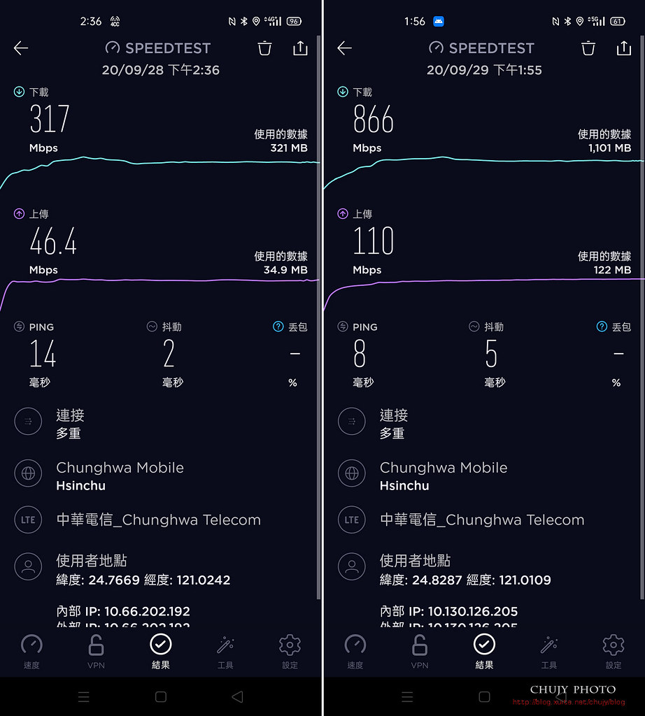 另外也提供國內各電信業者全頻的 5G 規格,5G NR 適用 n1 / n3 / n7 / n28 / n41 / n78,涵蓋台灣的 5G 頻段。實際測試中華電信 5G速度,可達866MB,相當快速。