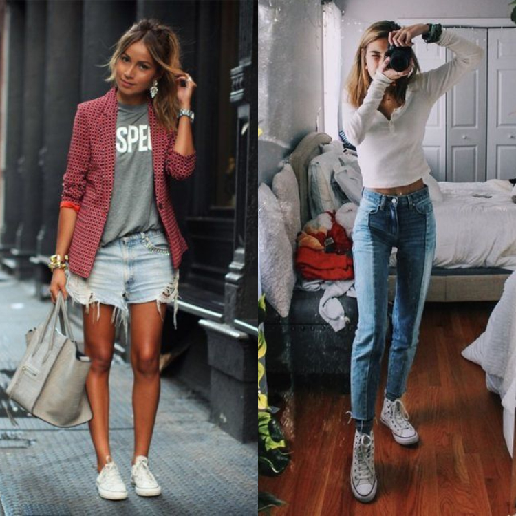 當腿部肌膚露出的面積越多,自然會讓腿看起來越長,因此如果穿得是過膝洋裝,低筒帆布鞋會比高統鞋款更合適。而且低筒也有個好處,就是只要搭配白襪就能擁有類似高筒鞋款的效果,是個進攻退可守的高CP好選擇。