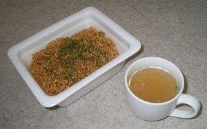 這款炒麵則附上了調味粉,在另一容器調製一碗湯拌著吃。