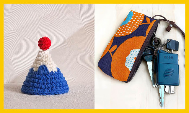 6. 女用鑰匙包:毛線編織 富士山鑰匙包