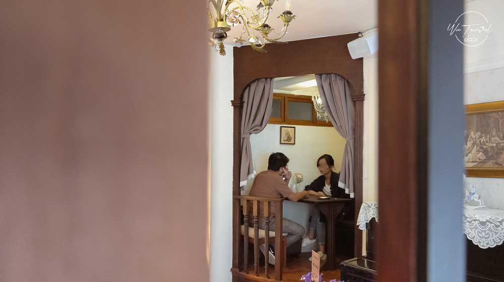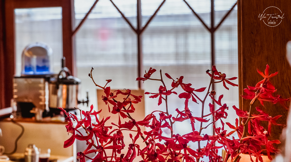 除了這個空間之外,紅色的老舊沙發椅點亮了整個室內的大角落,呈現L型的大區域讓人很感覺放鬆,隨著每個區塊都能看出喫茶小豆咖啡廳對桌椅的用心,還有對器皿的執著。