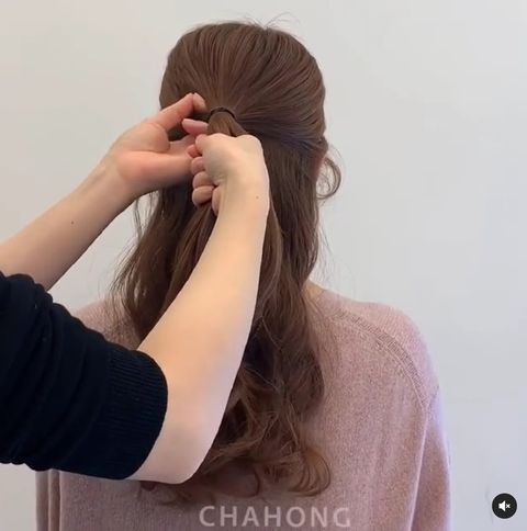 Step2:以對折手法綁起髮髻