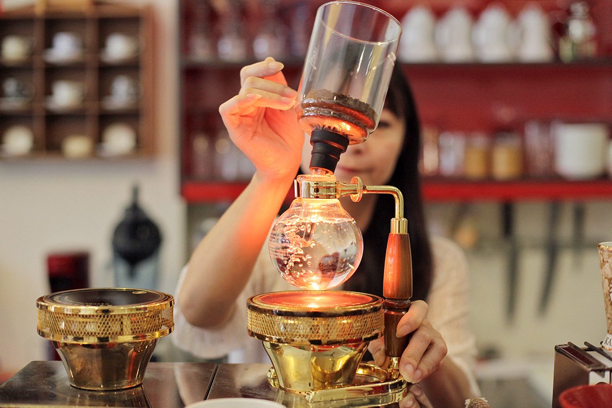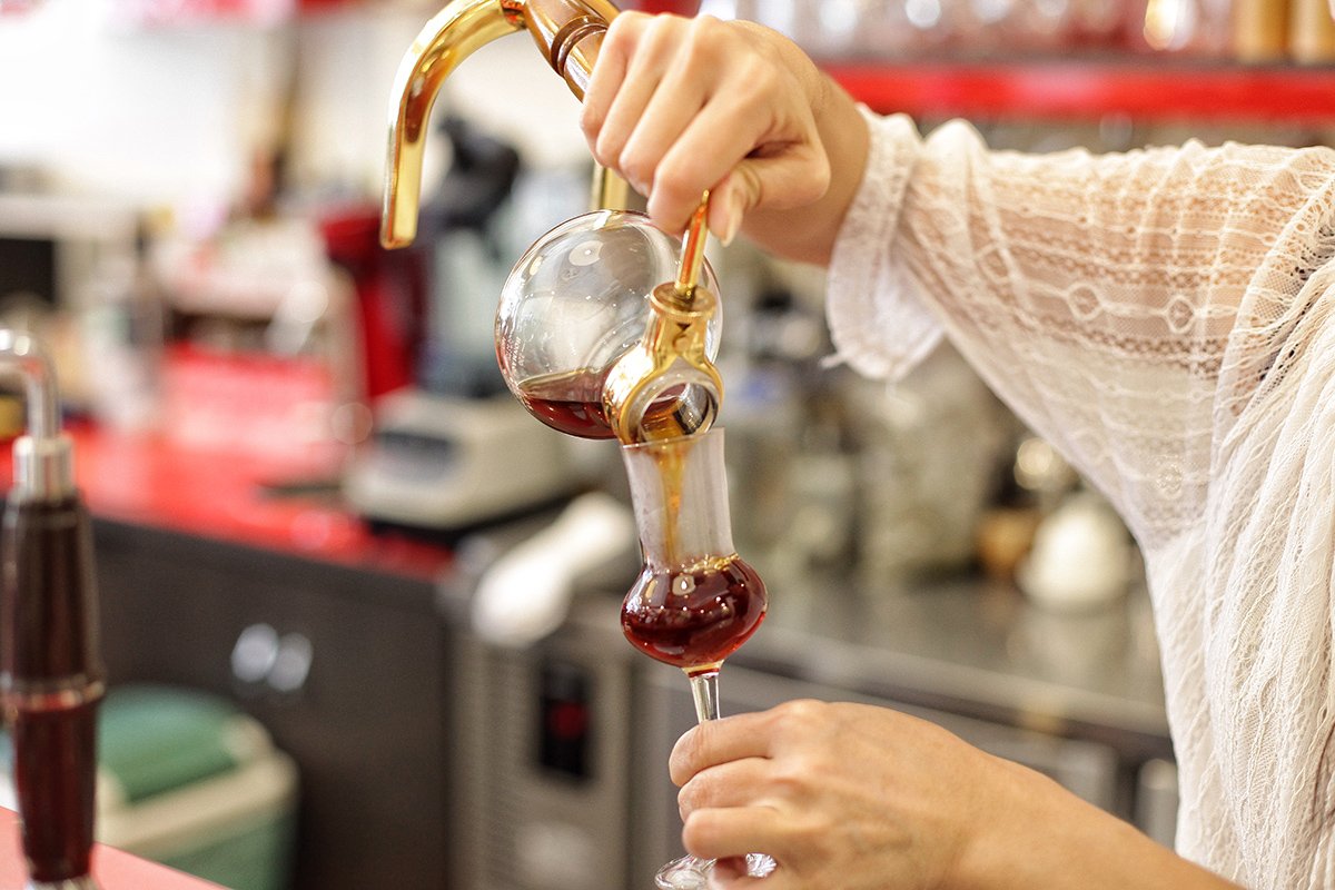 紅果的「單品咖啡」採用虹吸式,比起酒精燈或氣化爐「點」的加熱,老闆娘選用電熱光爐「面」的加熱讓咖啡喝起來不會那麼的乾,且口感滑順不苦澀。她不僅自己開設獨立咖啡館,還時不時舉辦像是手沖、虹吸、拉花等咖啡課程(需官網報名)。她也分享著要品這杯單品咖啡的話,可先分別聞乾香、濕香,觀其色澤再啜吸其味,熱、溫、冷層次風味皆有不同,也是它的最迷人之處。