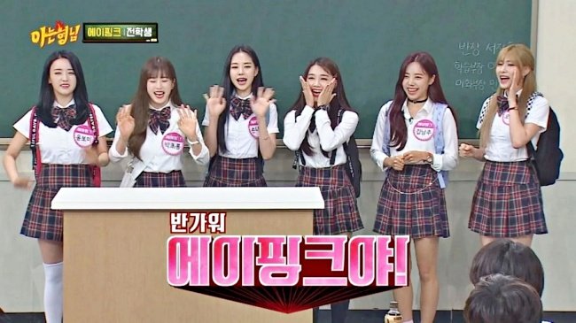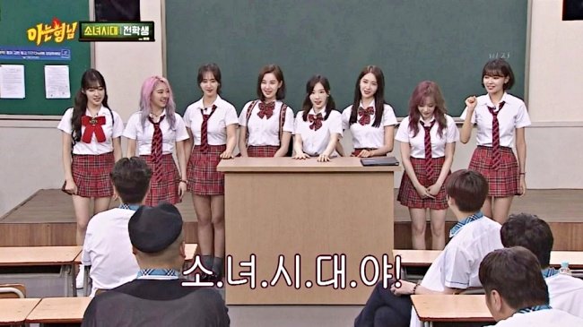 《認識的哥哥》以「學校概念」為主題,Oh My Girl、IZ*ONE、Apink、AOA等女團清一色都穿著同樣款式的百褶裙制服登場(外加搭配球鞋、講半語),TWICE則讓成員們穿上不同顏色的格紋裙,而少女時代只有蒂芬妮「擅自戴上超巨蝴蝶結」(被爆料XD),BLACKPINK上一次出演「認哥」時,也還算是乖巧地(?)統一校服,這一次整個大失控啦~
