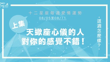 - 【08/05-08/11】十二星座每週愛情運勢 (上集) ~ 天蠍座心儀的人對你的感覺不錯!